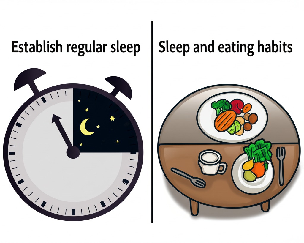 - 밤 12시 전 취침, 7~8시간 수면 유지