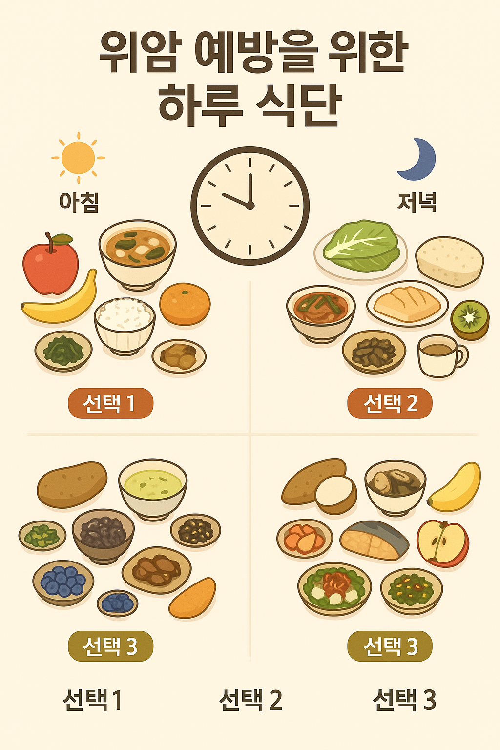 🍽️ 위암 예방을 위한 하루 식단 – 3가지 선택 세트
